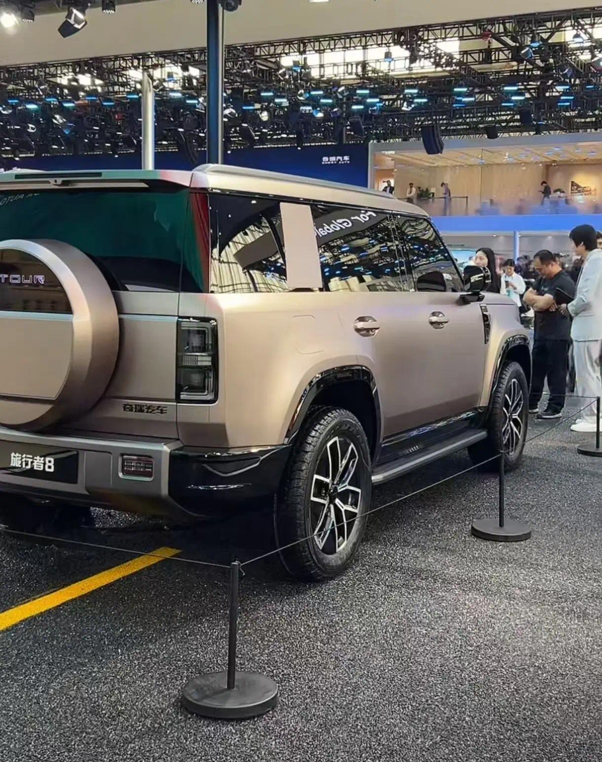 旅行者8的车长超5米,轴距近3米,这样的身材放在展台,有着一定气场,同时保障了车内宽敞的乘坐空间,悬浮式平顶是许多豪华SUV惯用的手法,前后隆起的轮拱增强了肌肉感,配备车顶行李架、侧踏板、花瓣状双色轮毂。