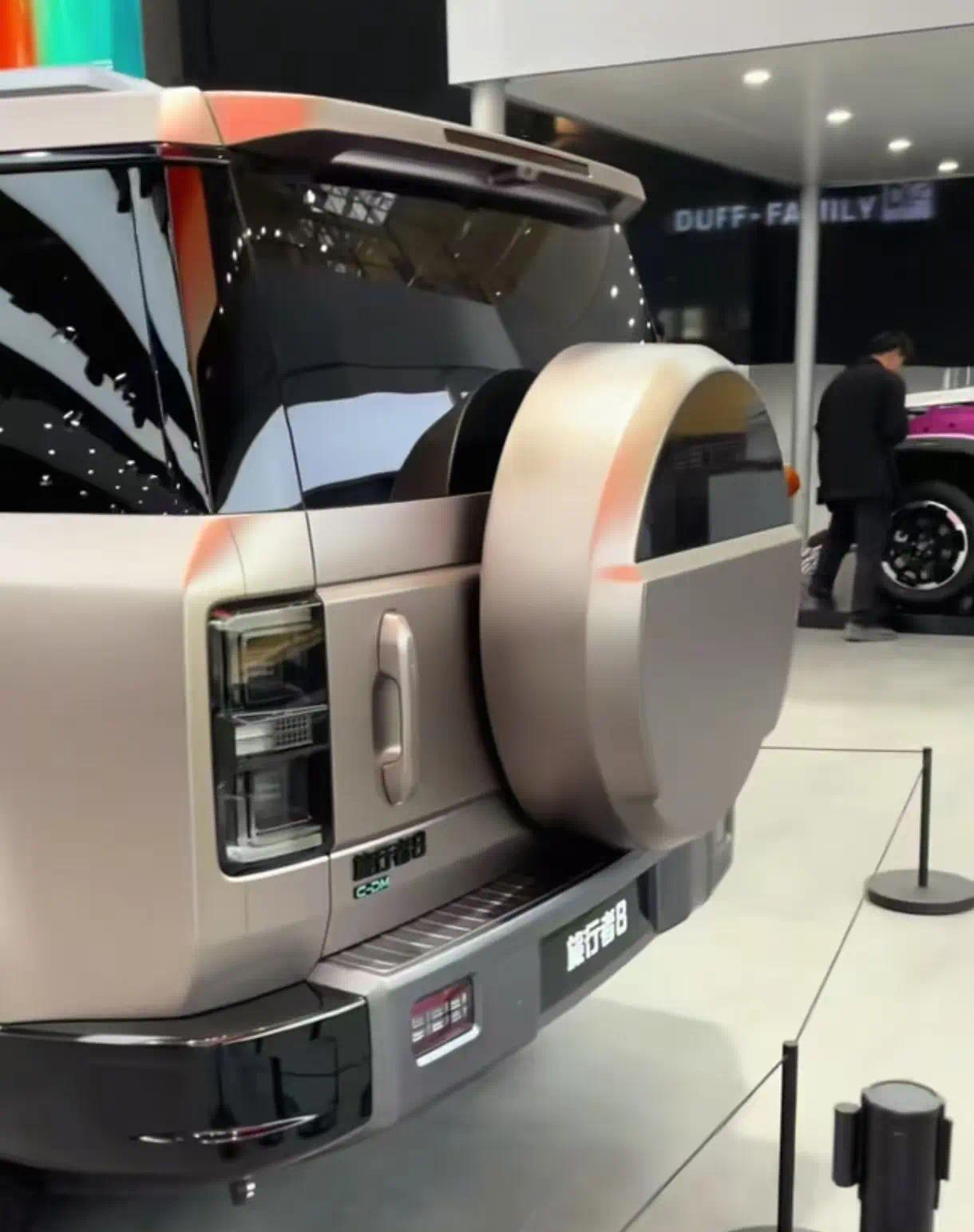 旅行者8的尾部方正立体,采用侧开式尾门和外挂式备胎,纵向布局的尾灯使用熏黑透明灯罩,此外我们可以看到旅行者8是有顶置激光雷达的,前风挡内部、前翼子板、外后视镜、后扰流板等处,设有多个高清摄像头、毫米波雷达、超声波雷达,将搭载高阶驾驶辅助系统,实现全场景泊车辅助、城市道路和高速道路NOA领航等功能。
