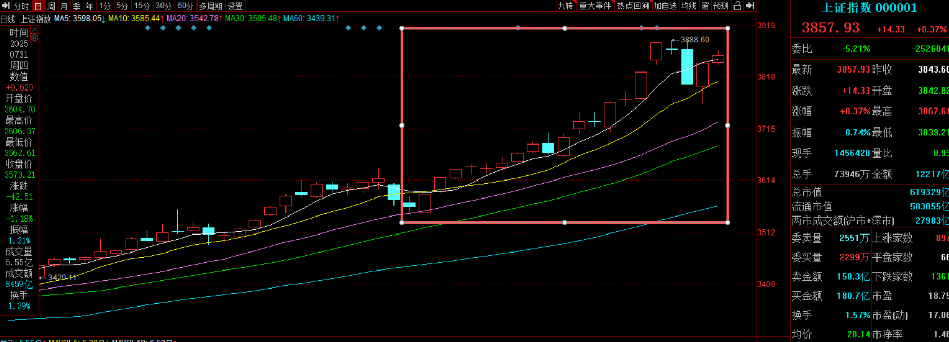 8月A股整体震荡走高,沪指时隔10年后重新站上3800点。截至8月29日收盘,沪指月内累计涨7.97%,深证成指累涨15.32%,创业板指累计涨24.13%。
