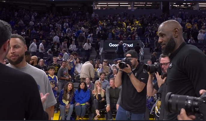 配资点评网 库里专注唠嗑 詹姆斯在一旁耐心等待随后温情相拥🫂